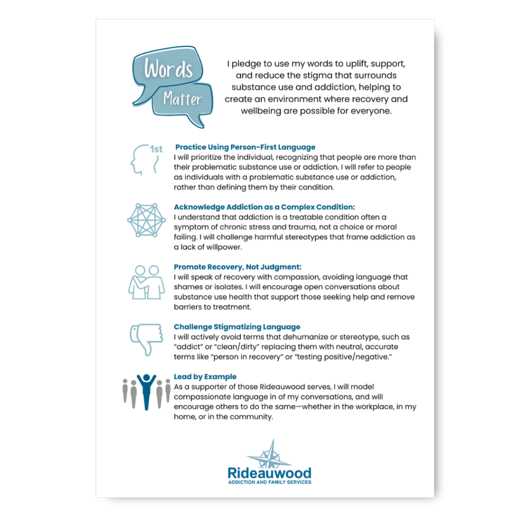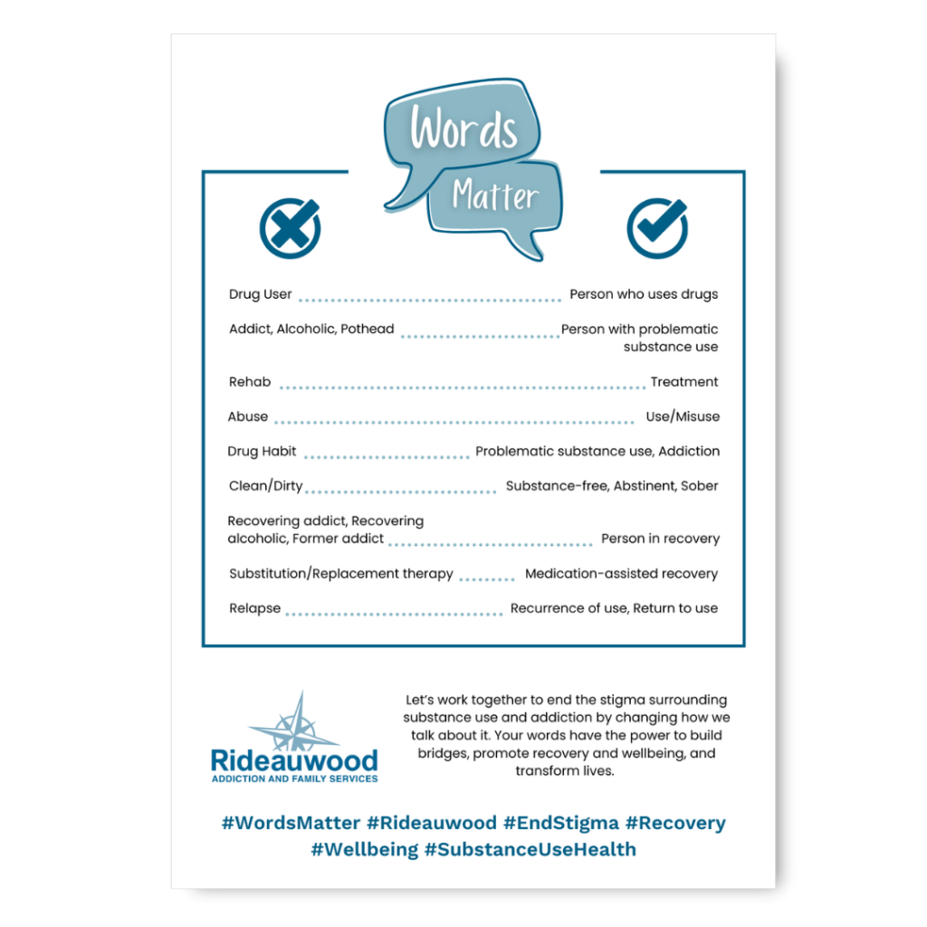 Together, we can end the stigma surrounding substance use and addiction by changing how we talk about it. Your words have the power to build bridges, promote recovery and wellbeing, and transform lives.